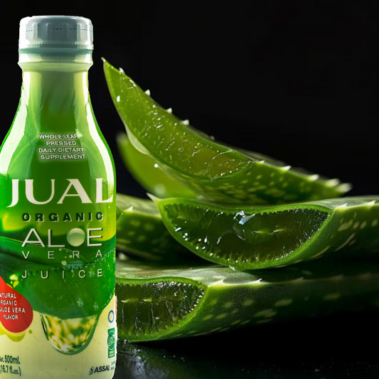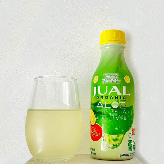 Our organic aloe vera juice is grown in the rich soils of Argentina and cold-pressed within 24 hours of harvest to retain 95% of its nutrients and vitamins. Enjoy the natural benefits of Jual's additive-free juice, which supports digestion, boosts immunity, and hydrates the skin.